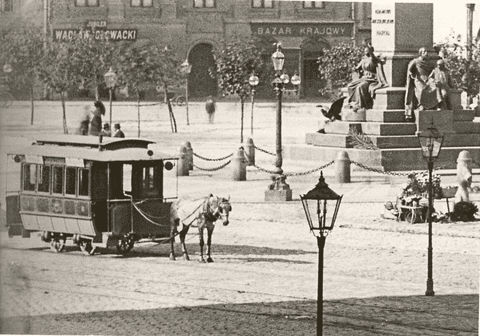 Odpowiedź na to pytanie historycy znaleźli w książce „Kopiec wspomnień” napisanej przez polskiego polityka Bolesława Drobnera. Wiele stron poświęcono Krakowowi z końca XIX wieku. Autor wspominał, że pierwszy tramwaj konny pojawił się na ulicach miasta w ostatni dzień października 1875 roku, umożliwiając pasażerom podróż z Rynku Głównego do Kościoła św. Idziego. Dochody z biletów mieszkańcy postanowili przeznaczyć na budowę pomnika Adama Mickiewicza. Później trasę przedłużono do dworca kolejowego na ulicy Wawrzyńca.