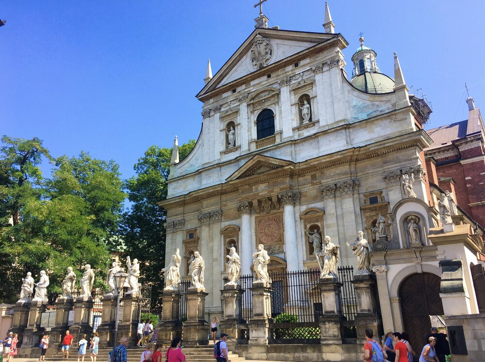 Na liście najbardziej niezwykłych budowli Starego Miasta niewątpliwie znajduje się kościół św. Piotra i Pawła. Aby się o tym przekonać, wystarczy spojrzeć na ogrodzenie przed elewacją budynku, które zdobi 12 posągów apostołów wykonanych z uwzględnieniem ludzkiego wzrostu.