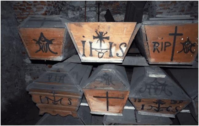 Кладбища и разнообразные некрополи издавна интересовали не только археологов, но и писателей, режиссеров, художников разных жанров, ведь смерть во все времена оставалась одной из важных составляющих человеческого бытия. Чем и воспользовались разные страны для создания специальных туристических маршрутов. Город мертвых в Даргавсе Северной Осетии, подводное кладбище в Майами. сидячее кладбище Чаучилла в Перу, остров-кладбище Сан-Микеле в Венеции, могилы-сейфы в столице Боливии Сукре… Чего только стоит Ньюгрейндж в Ирландии, который признан старше Стоунхенджа и египетских пирамид! Есть свой давний некрополь и в польском Кракове – это катакомбы под римско-католическим Костелом святого Казимира на современной Реформаторской улице. Его не сравнить по масштабам с парижскими катакомбами, где похоронено 5 миллионов человек, но все-таки это место сохранило свою таинственную ауру, пишет сайт krakow-future.eu.