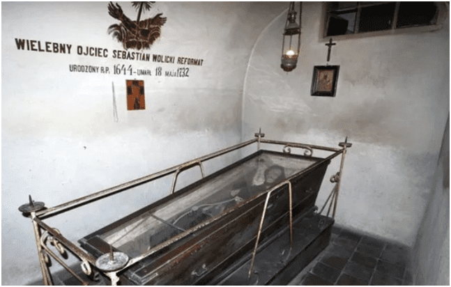 Найкраще збереглися останки священника Себастьяна Волицького у скляній труні. А ще змогли ідентифікувати мумії засновника монастиря Франтішека Шебека, Урсули Можковської та Доміцели Скальської. Завдяки літописцю реформаторів Яну Пасічнику вдалося з’ясувати, що з часів заснування костелу до кінця XVIII століття там було поховано понад 700 осіб.