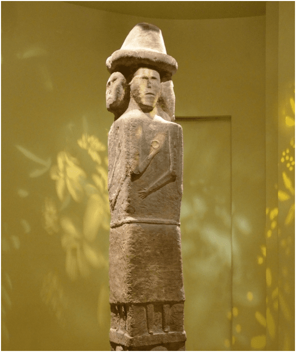Родом кам’яний ідол із Поділля, у 1848 році поблизу села Гусятин у річці Збруч прикордонники випадково побачили у воді дивовижний предмет. Річка, яка впадає у Дністер, через посушливе літо обміліла, а оскільки Збруч був тоді кордоном між Австро-Угорщиною та Росією, австрійські прикордонники проявили пильність. Побачили у воді людське обличчя з каменю, потім – чотиригранний стовп. Поквапилися повідомити про знахідку місцевого поміщика з маєтку Личківці, той одразу ж зацікавився. Статуя виявилася у 3 метри завдовжки, витягали її шістьма волами.