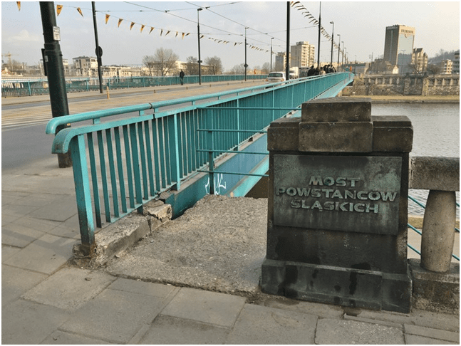 До переліку відомих мостів Кракова входить і міст Сілезьких повстанців, який з’єднує Середмістя (вулиця Старовісльна) з Подгуже (вулиця На Зʼїзді). Більше відомий полякам як міст Кракуса або Третій міст. Остаточна зміна назви на Сілезьких повстанців відбулася наприкінці минулого століття за часів Польської Народної Республіки.